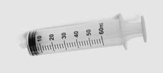 Disposable needle syringes (luer lock). Available in 20ml and 60ml sizes.